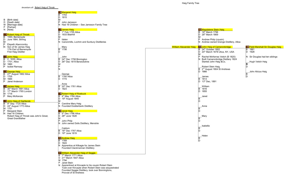 Eldest Son James Haig went on to own Canonmills, Lochrin and Sunbury distilleries in Edinburgh.